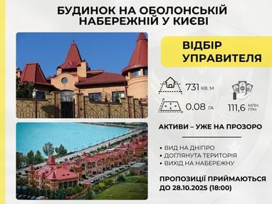 АРМА продає елітний будинок на Оболонській набережній у Києві (фото)Агентство з розшуку та менеджменту активів оголосило на платформі Prozorro відкритий конкурс із відбору управителя для елітного будинку в Києві.Нерухомість була арештована в кримінальній справі про державну зраду та передана в управління АРМА за рішенням суду.Актив розташований на Оболонській набережній. За результатами незалежної оцінки, ринкова вартість будинку (731,6 кв. м) становить майже 85 млн грн (без ПДВ), а земельної ділянки (0,0775 га) — 26,6 млн грн (без ПДВ).До домоволодіння прокладено асфальтований під’їзний шлях, будинок має окремий вихід на набережну та впорядковану прибудинкову територію.АРМА запрошує бізнес, зокрема агентства нерухомості, долучитися до конкурсу на платформі Prozorro та подати свої пропозиції до 28 жовтня 2025 року (18:00).До участі допускаються потенційні управителі, які відповідають кваліфікаційним вимогам.Не допускаються: власники арештованих активів і представники держави-агресора.